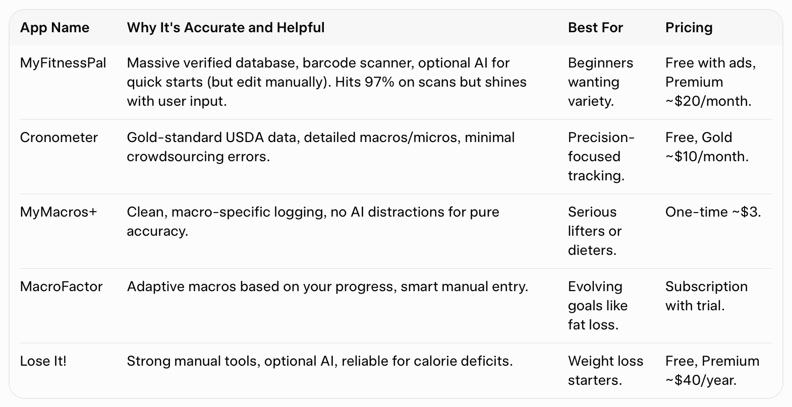 Bottom line.. AI is great for quick estimates, but it often underestimates or overestimates by 200-500 calories per day if you're not double-checking.